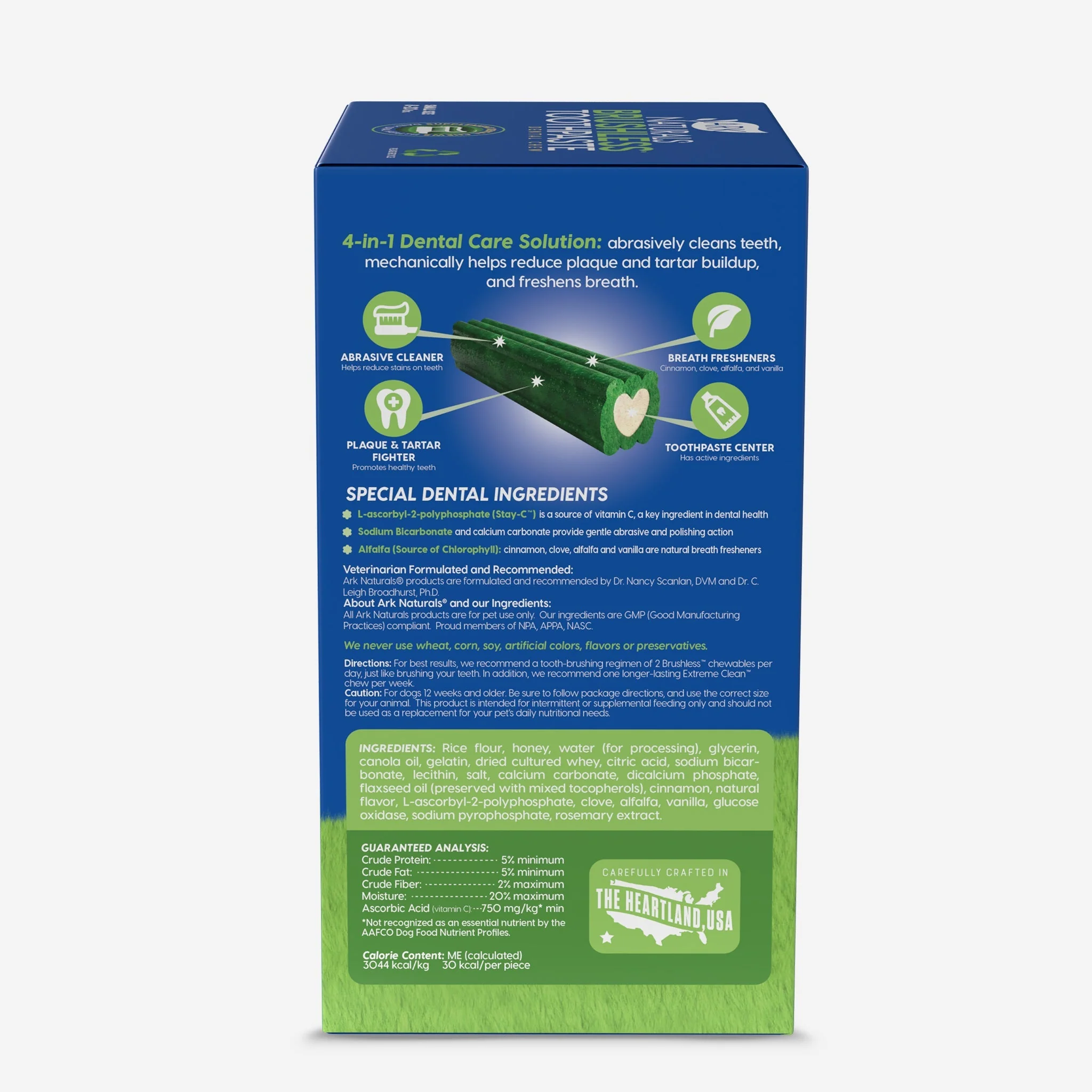 Our 4-in-1 Brushless Toothpaste dental chews clean, polish, and freshen breath! Their unique texture helps reduce plaque, tartar, and helps clean along the gumline as your dog chews. Plus – they are the only 4-in-1 dental chew that has a chewy toothpaste center that polishes teeth. Ranked Medium on our DENTA-METER™, they are perfect for your everyday chewers!